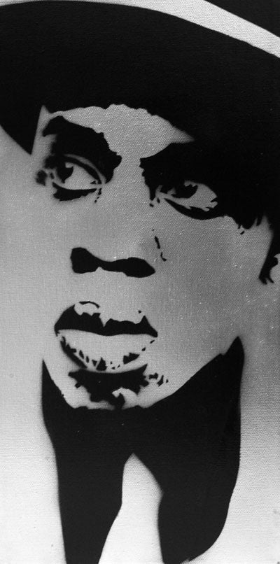 10" x 20" Jay-Z two-color spraypaint on canvas. Signed by artist Alex Cole Jr.