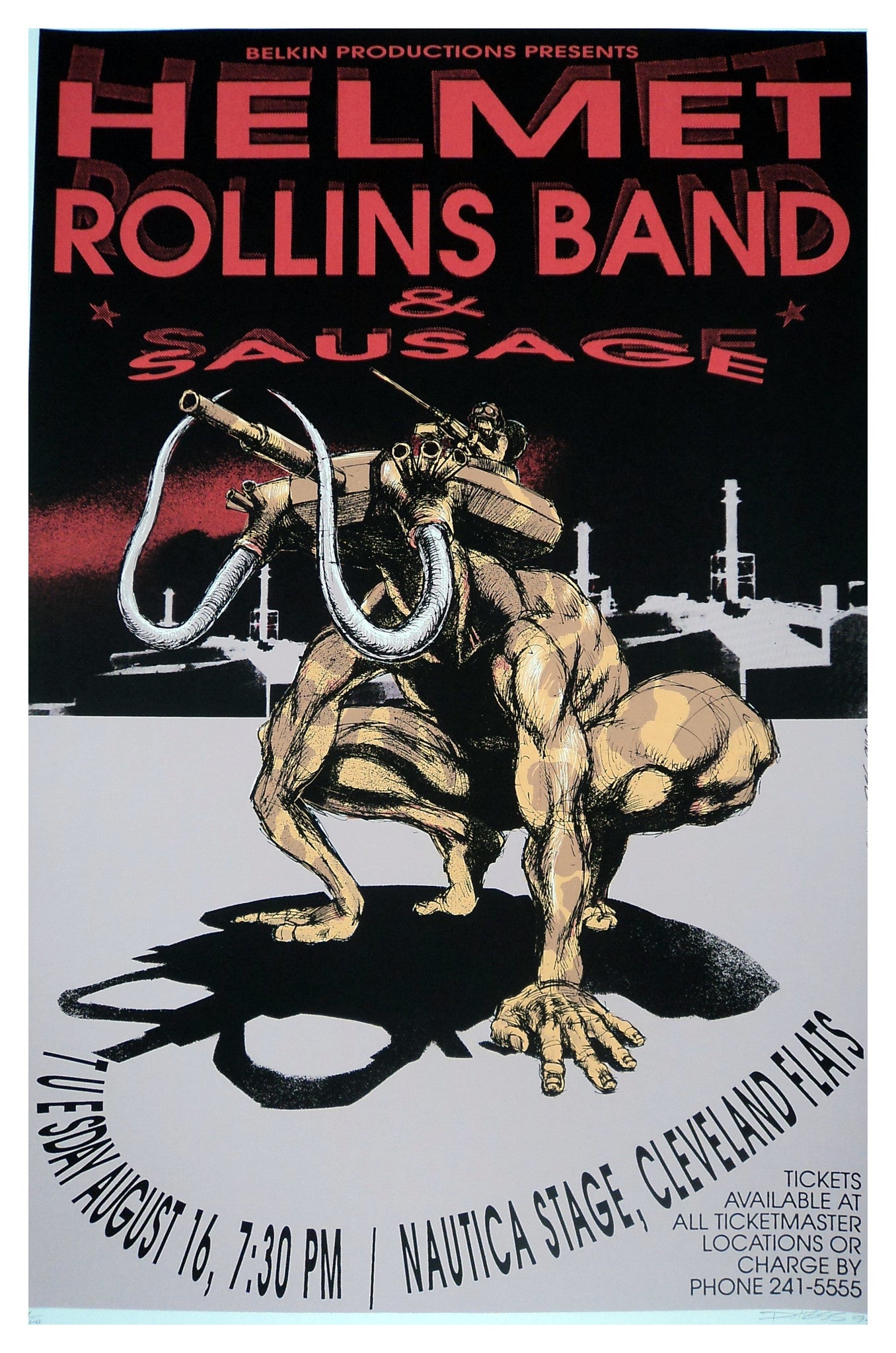 Helmet 6 color serigraph, 27 x 18 1/4 in, edition of 400 Bands: Helmet , Rollins Band , Sausage Event: Nautica Stage- Cleveland, OH 8/16/94