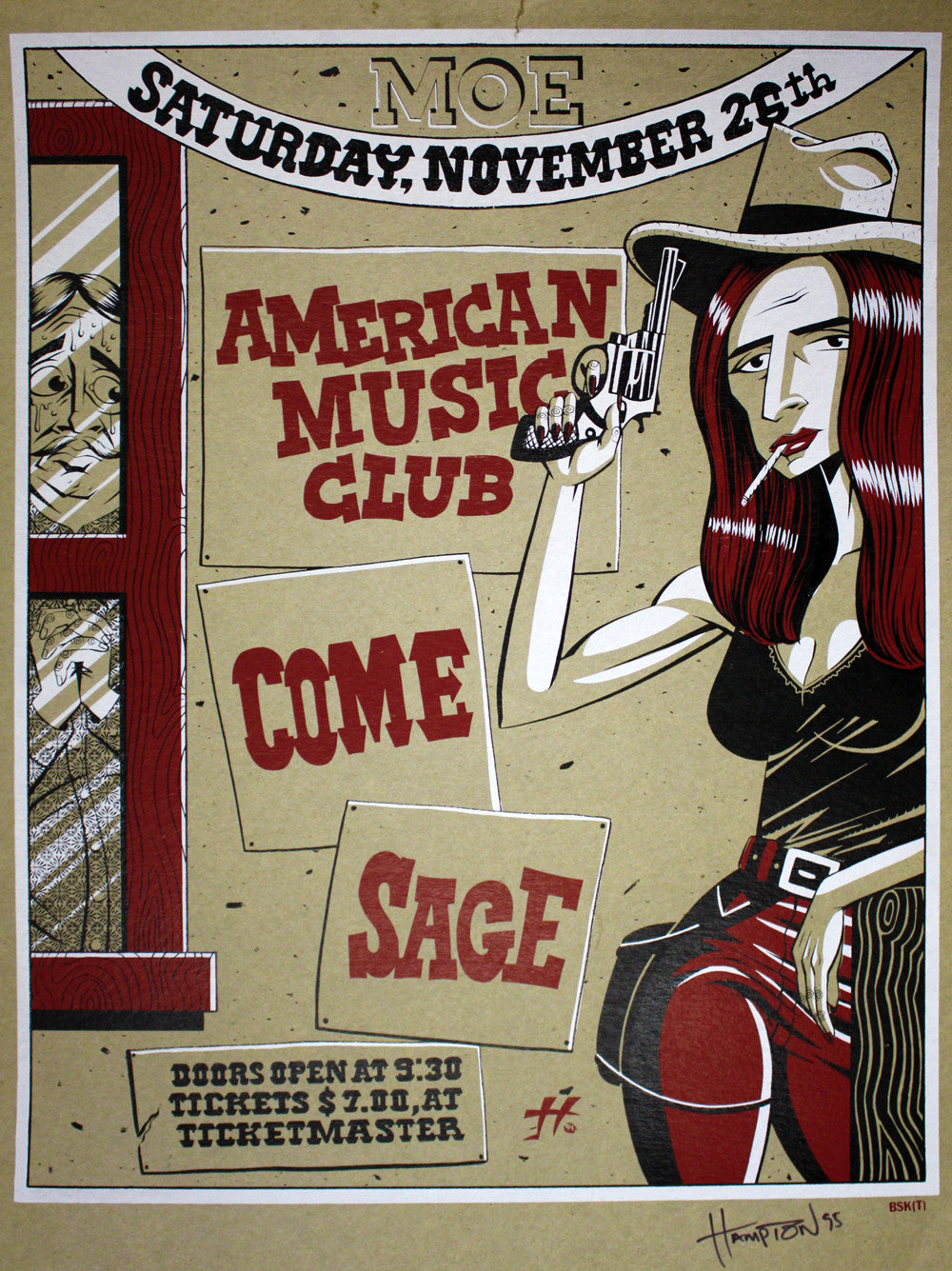 Justin Hampton - 1994 - American Music Club Concert Poster